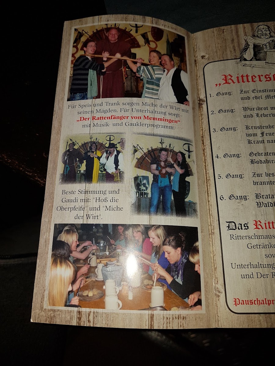 Welcome to Ritteressen zu Kirchberg an der Iller, a unique culinary experience nestled in the heart of Kirchberg an der Iller, Germany. This charming restaurant offers patrons an enchanting ambiance reminiscent of a bygone era, where every detail contributes to a magical evening. Guests rave about the stunningly tender meats, notably the succulent Schweinshaxen, paired perfectly with flavorful sides like creamy Kartoffelbrei and tangy Sauerkraut.